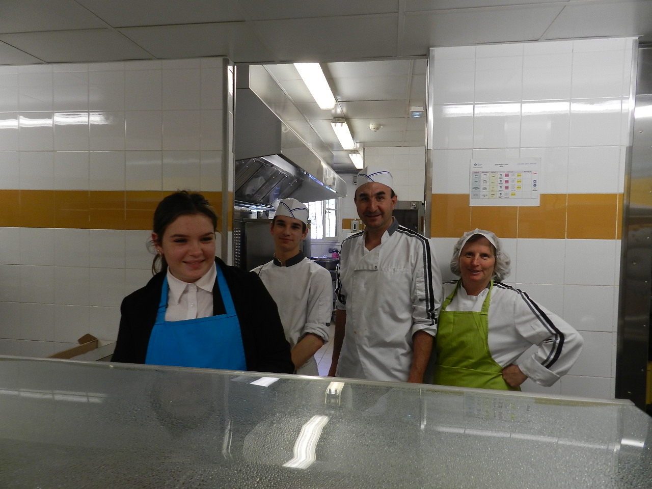 M Jean-Luc ALLEGRINI, Principal, Mme Anne-Marie Fulconis, 1ère Adjoint au Maire et représentant Mme Colette Fabron, Maire de St Etienne de Tinée, et Mme Françoise Goots-Terrusse, Adjointe Gestionnaire, se réjouissent du succès de la restauration scolaire dans l’établissement, et du professionnalisme de nos jeunes stagiaires.